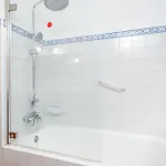 Eine Terrasse bietet zudem einen Ausblick auf den Garten. Zur Ausstattung des Badezimmers gehören auch ein Bidet, eine getrennte Toilette und eine Dusche. Die Badezimmer sind auch mit einem Haartrockner und Handtüchern für Ihren Komfort ausgestattet.